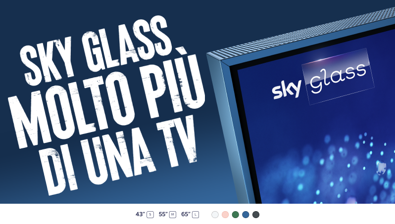 - Sky Glass è la nuova TV di Sky, disponibile per te in diverse misure (44", 55", 65") e colori, con tecnologia Quantum Dot che esalta la qualità dell'immagine.